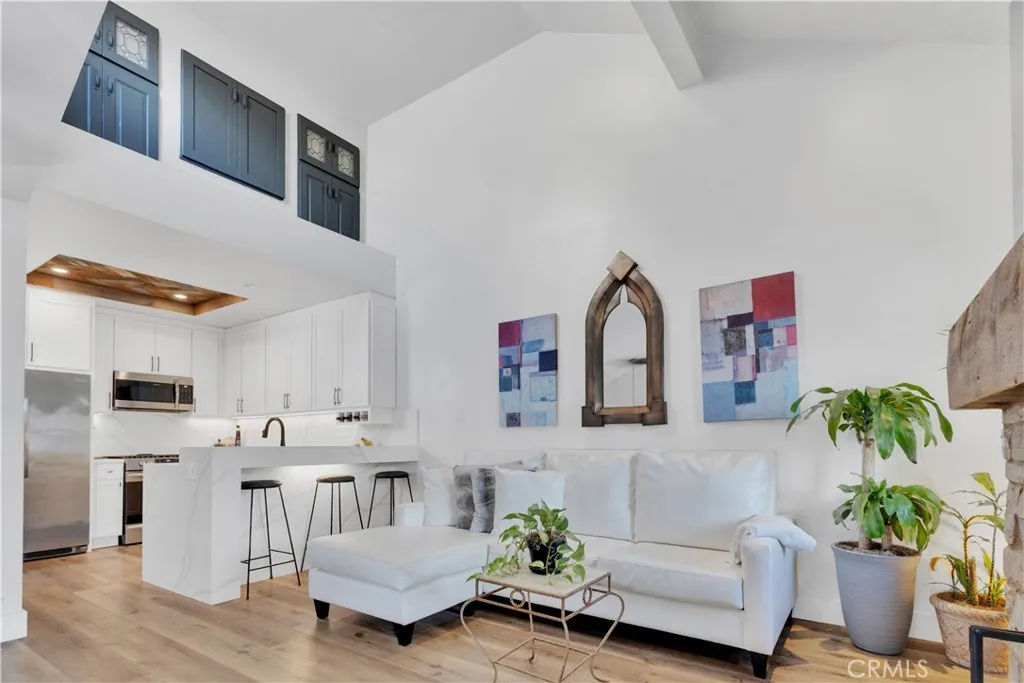 Welcome to a unique opportunity to own a fully upgraded one-bedroom, one-bath condo showcasing custom finishes and thoughtful enhancements throughout. Filled with ample natural light and featuring its own private balcony, this home offers a bright, open feel that complements its high-end upgrades. The expanded kitchen is beautifully designed with white shaker soft-close cabinetry, quartz countertops with a full slab backsplash, stainless steel appliances, under-cabinet LED lighting, and a reclaimed wood ceilingperfectly blending warmth and modern style. Throughout the home, youll find luxury vinyl plank flooring, new baseboards, fresh interior paint, PEX plumbing, and a newer water heater. The spa-inspired bathroom is both functional and elegant, featuring a large walk-in shower with Italian porcelain tile, bench seating, and a dual-sink quartz vanity. Additional highlights include a separate water closet, a spacious walk-in closet, built-in linen cabinetry, and a skylight that enhances the natural light. A custom three-sided stone fireplace with reclaimed wood accents serves as a stunning focal point, while LED lighting throughout, a stacked washer and dryer conveniently located in the bathroom, and a versatile attic storage space with vaulted ceilings add to the homes practicality. Complete with a detached single-car garage with storage (and conveniently located across from the front door), this turnkey residence offers the perfect blend of style, comfort, and quality craftsmanship.
