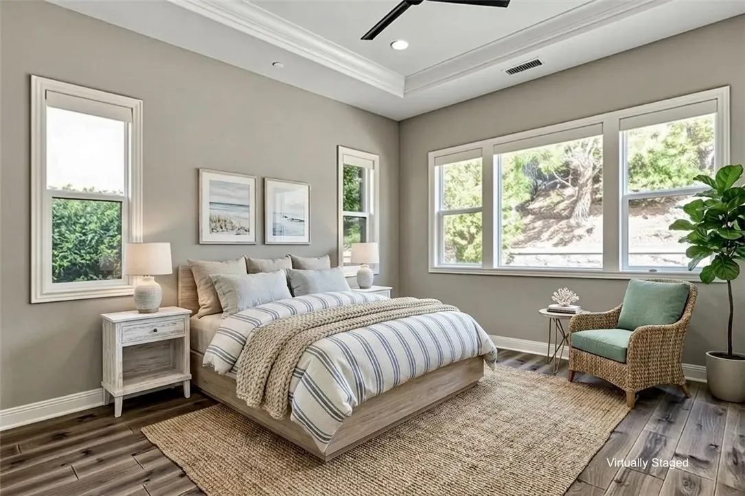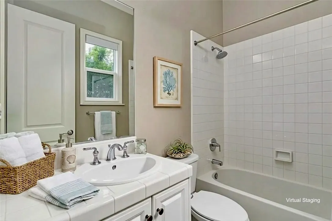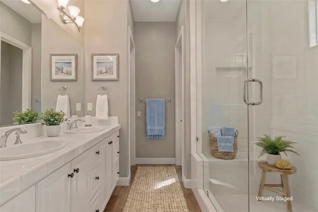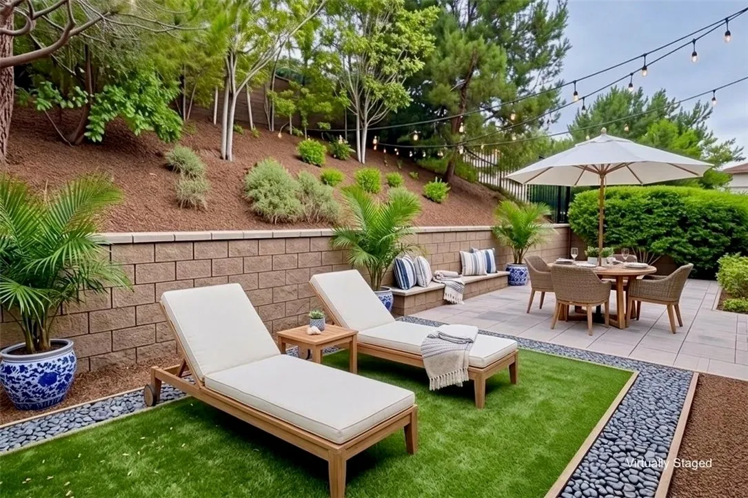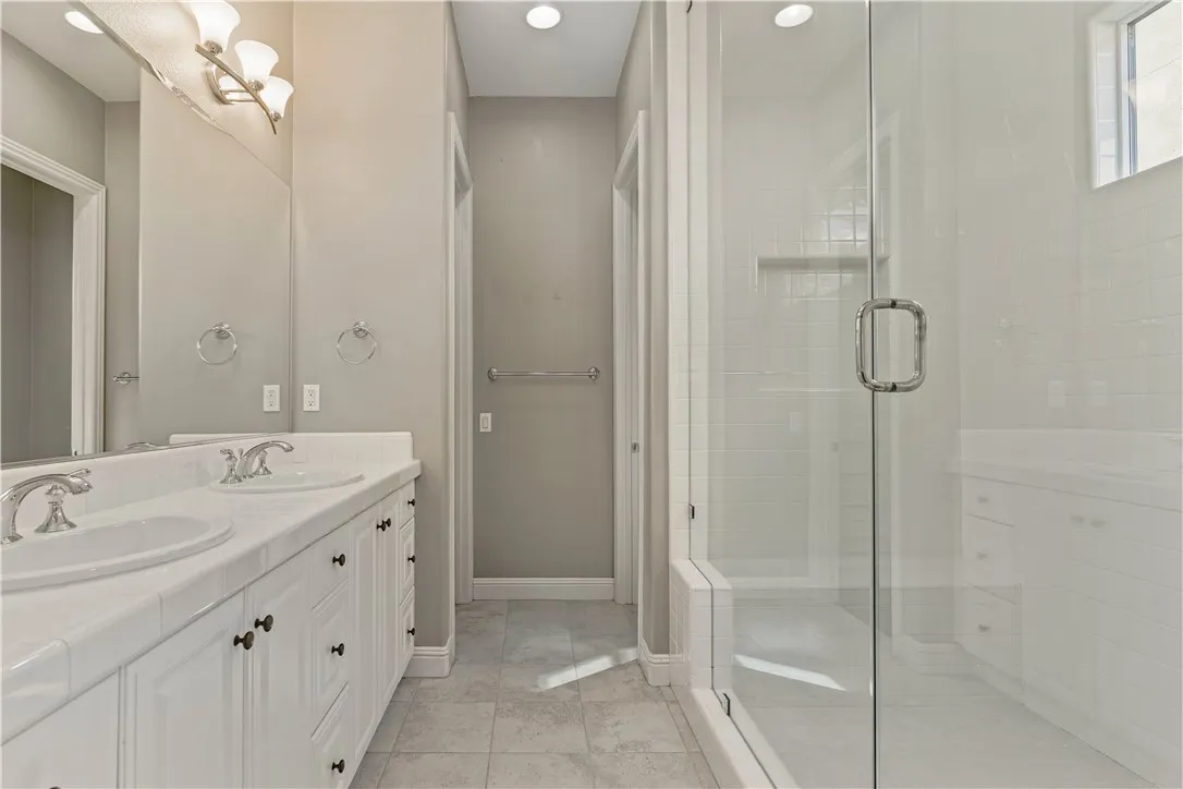 Experience seamless indoor-outdoor living in this coveted single-story residence, perfectly positioned on a premier lot adjacent to a tranquil greenbelt in Carlsbads Robertson Ranch. The open-concept floor plan is anchored by soaring ceilings and a sliding glass door system, designed for effortless entertaining and step-free movement throughout the home. Infused with natural light from the expansive windows and ceilings makes the open-concept great room the homes centerpiece, seamlessly integrating lounging, dining, and culinary features with direct backyard access for the ultimate Southern California lifestyle. The kitchen boasts an oversized center island, professional 6-burner cooktop, built-in refrigerator, walk-in pantry, and a reverse osmosis water system. The primary suite offers a light-filled private retreat with trey ceiling, an ensuite bathroom with dual-sink vanity, an expansive walk-in shower with bench seating, and a custom-organized wardrobe closet. Two additional bedrooms each feature dedicated bathrooms providing privacy and comfort. The low-maintenance backyard provides a private outdoor oasis with professional landscaping, a travertine tile patio, and premium artificial turf. Interior upgrades include designer woodgrain flooring (no carpet), tailor-made window shades, and custom cabinetry in the laundry and dressing areas. Modern essentials include a whole-house water softener, dedicated laundry room, and a direct-access two-car garage. Residents of Robertson Ranch enjoy exclusive access to The Oasis featuring a multi-purpose room, large pool, spa, separa