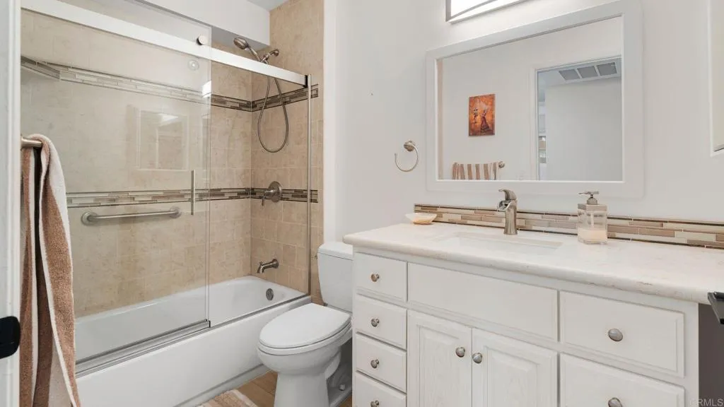 Welcome to this beautifully maintained 2-bedroom, 2-bath condo located in the heart of Mission Valley. This 1st floor unit offers a functional, open layout with a spacious living area, private patio, and tranquil greenbelt views. The kitchen flows seamlessly into the living space, making it ideal for both everyday living and entertaining. Both bedrooms are generously sized, with the primary suite featuring an in suite bath for added comfort and privacy. This home also includes one assigned parking space, an additional permitted parking space, and a separate private storage area, a rare and valuable bonus in this central location. Situated in a well-maintained community with resort-style amenities including a pool, spa, recreation areas, and common laundry facilities, youll enjoy both comfort and convenience. Located just minutes from shopping, dining, major freeways, and public transportation, this is an excellent opportunity for owner occupants or investors seeking easy, central San Diego living. Some images in this listing have been virtually staged to help illustrate the propertys potential.