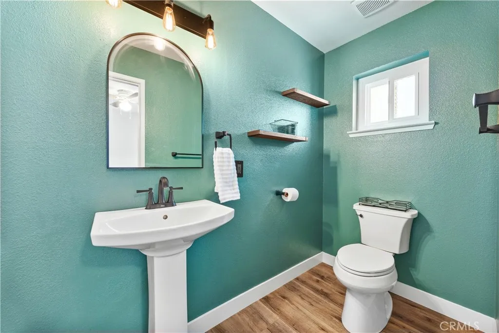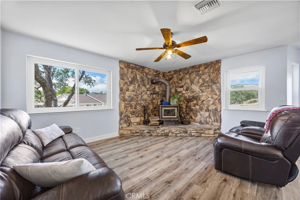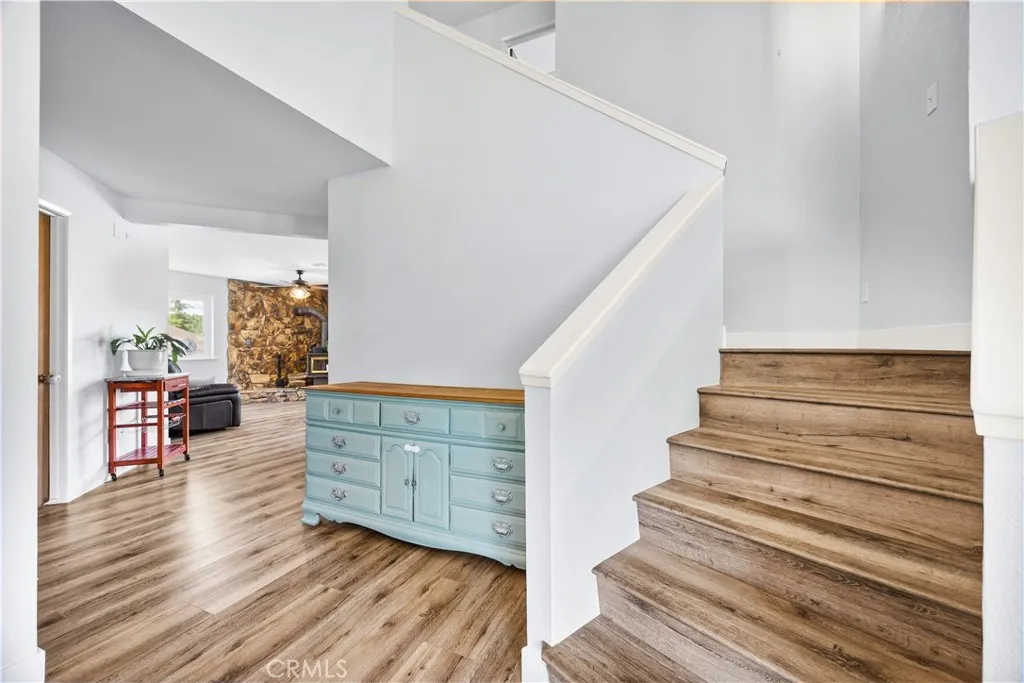 Spacious Tehachapi living at its best! This 4-bedroom, 3-bath home offers over 2,500 sq ft of comfortable space, featuring wood laminate flooring throughout and a versatile layout. Enjoy formal living and dining rooms, plus a separate family room with a cozy wood-burning stove. One bedroom and a full ensuite bath are conveniently located downstairsperfect for guests or multi-gen living. Recent upgrades include new AC and windows, along with beautifully updated bathrooms. The solar system comes with a continuous true-up credit, helping keep energy costs low. Situated on a large lot, this home offers both space and efficiency in a desirable setting.