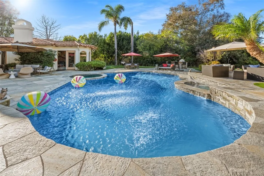 Stunning, warm, and inviting, Luxury Estate Home located in the highly sought after, guard gated community of Fairbanks Ranch, in Rancho Sante Fe. A rare gem, this single story, immaculately maintained home boasts roughly 6,500 sq ft of casual elegance. The main house has 4 Bedrooms & 6 Bathrooms, include the elaborate Master Suite which boasts a custom fireplace with stone accents, huge bathroom with jetted tub, glass shower, dual sinks and more. The chefs Kitchen features an integrated refrigerator, double oven, large island, and opens to a sunken bar (which accesses the backyard) and cozy Family Room, with large custom fireplace and built-in entertainment center. The backyard will make you feel like you are on vacation, all year long. Relax in the elegant pool and spa, which are wrapped in flagstone, and enjoy the sound of the water features, as you drift away. There are multiple seating areas and ample space for entertaining. Your guests will enjoy the 1000sf+ Guest House, which features 2 Bedrooms and a Full Bathroom, along with a flex space and its own gated patio. For those dog lovers, you will enjoy the fenced in 2000sf+ Dog Run, which has a dog door from the garage. Paid solar, water softening system, close to shopping, schools, and entertainment. Too many custom details to list here, this home is a MUST SEE!