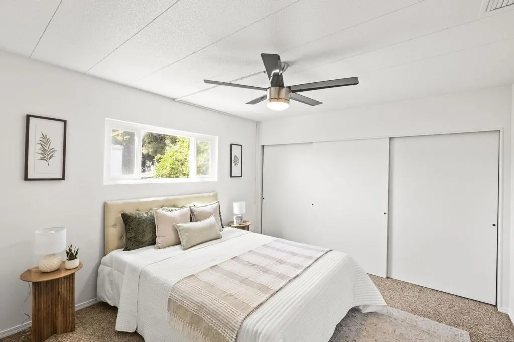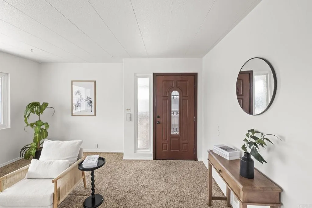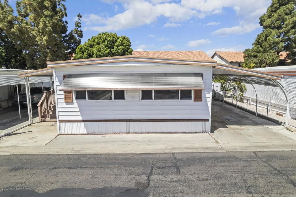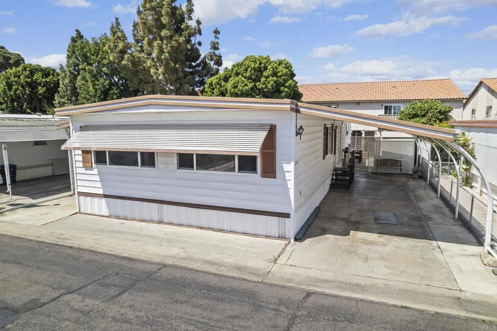 Welcome to Orange Tree Mobile Home Park, a private gated 55+ community where you own both home and landan incredible opportunity for low-maintenance living at a great value! This lovingly cared-for home has been in the same family since it was purchased new, and reflects true pride of ownership throughout. Step inside to an inviting open floor plan featuring a spacious living room, dining area, and separate family room. Natural light fills the home through dual-pane windows, enhancing the fresh interior paint and bright, airy feel. Both generously sized bedrooms offer large closets, ceiling fans, and direct access to their own beautifully upgraded bathrooms, providing comfort and privacy for residents and guests alike. Additional highlights include indoor laundry with washer and dryer included, a whole-house water filtration system, and Solatubes for additional natural light. Orange Tree residents enjoy a low $105 HOA fee that covers amenities including: gated entry, a car wash station, extra laundry facilities, and two pools with clubhouses with full kitchens, which are available for private party rentals. On-site RV parking is available for only $75 per month. It's also a great location, with easy access to the 5 and 805 freeways. Less than 2 miles to San Diego Bay, it's a short 15 minute drive to Imperial Beach. To top it off, the property includes two large storage sheds. This is a rare chance to own in a well-maintained, amenity-rich community with land ownership included and a very low monthly fee!